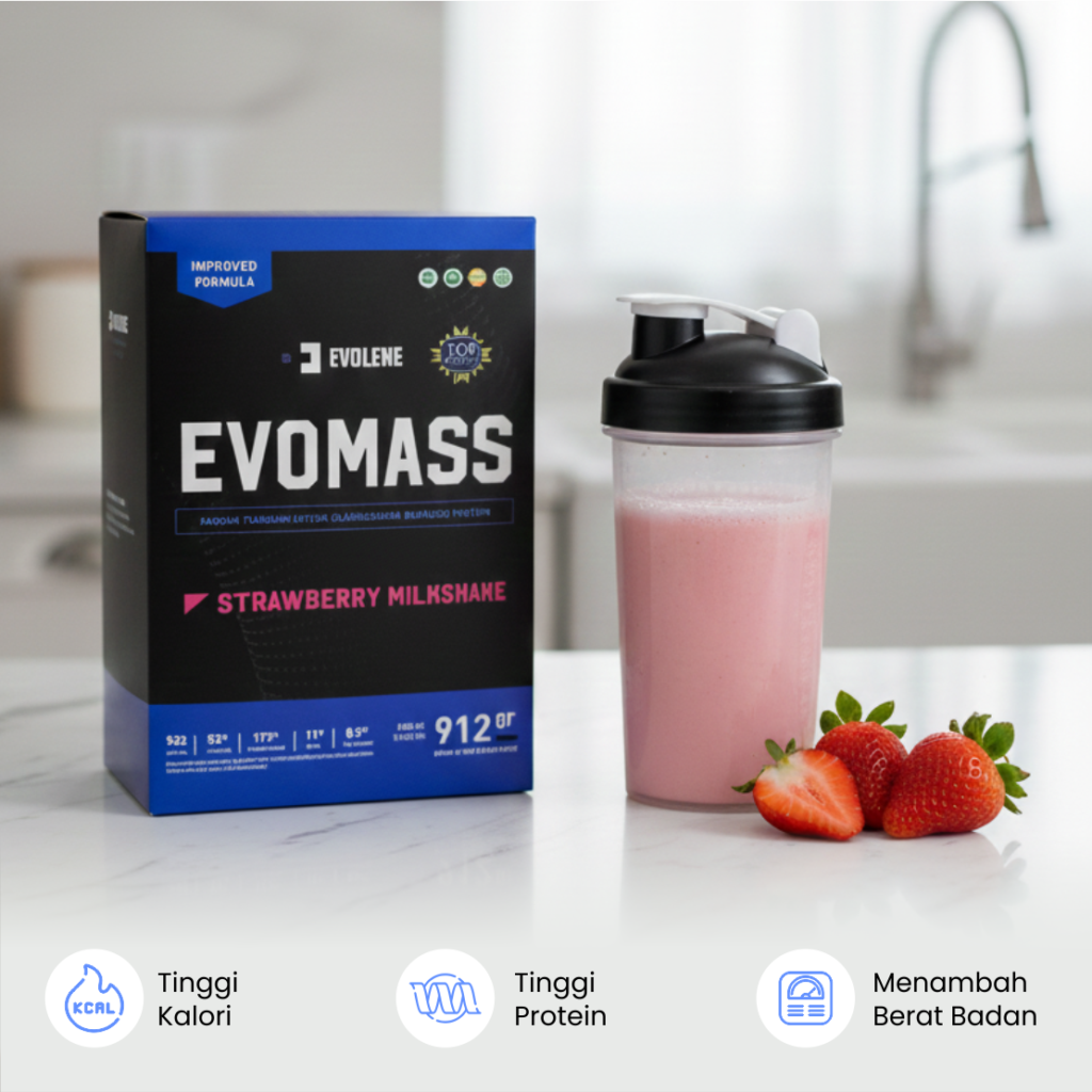 Dengan rasa strawberry yang lembut dan tekstur cepat larut, EVOMASS Strawberry Milkshake menjadi pilihan praktis bagi kamu yang membutuhkan asupan kalori, karbohidrat, dan protein dalam rutinitas latihan maupun aktivitas harian.